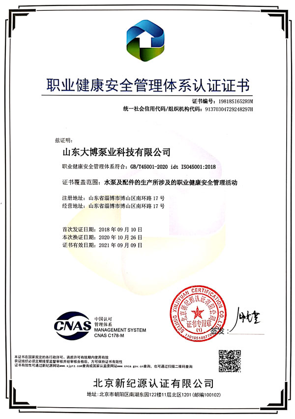 職業(yè)健康安全管理體系認(rèn)證證書(shū)
